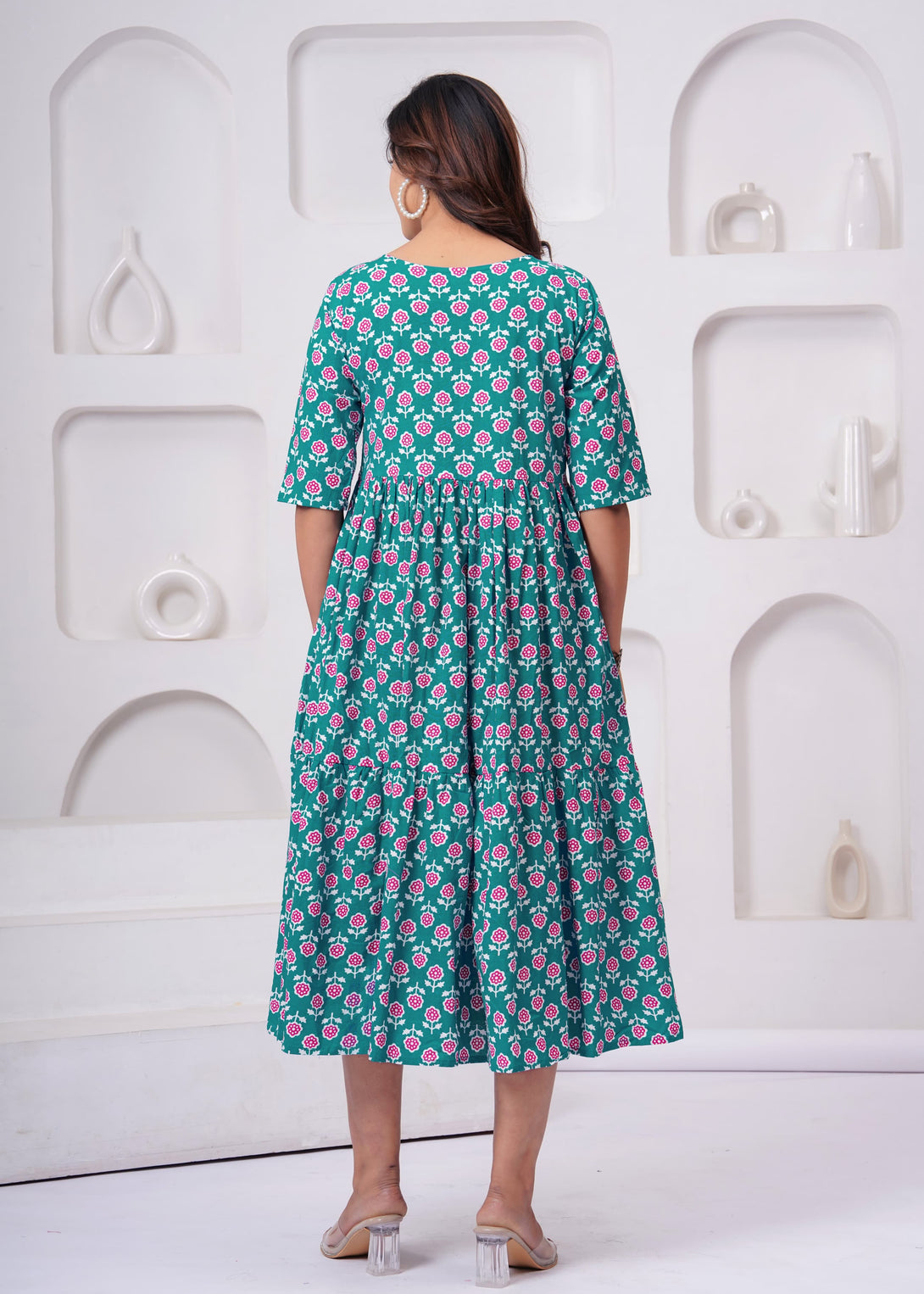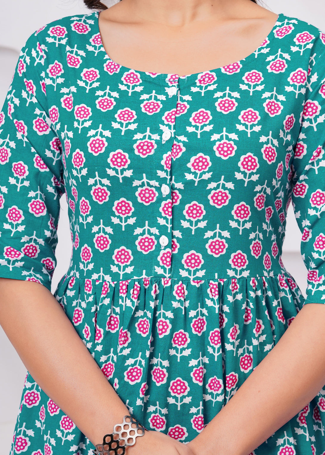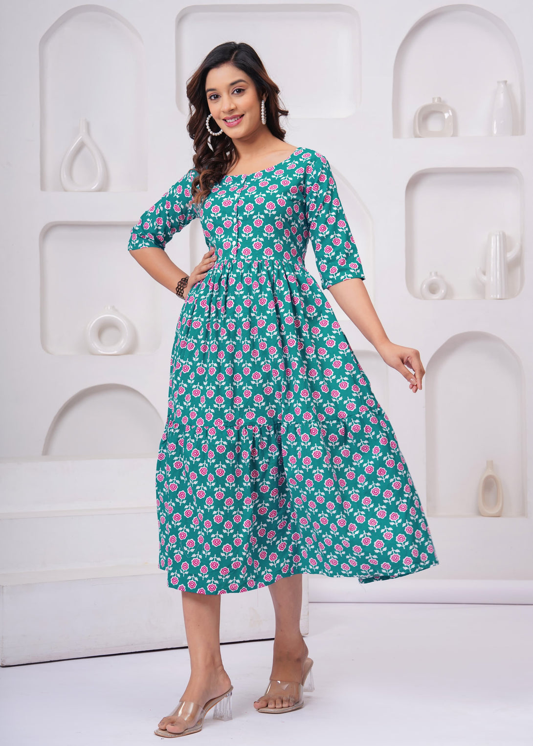 Make this summer unforgettable with Nayu Fashions’ latest Green Floral Printed Heavy Rayon Midi Gown Dress — a beautiful blend of comfort, color, and charm!