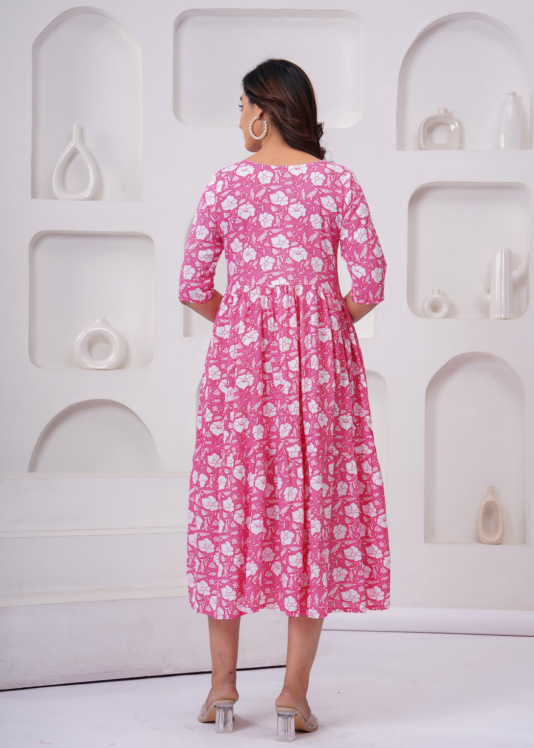 Nayu Fashions Women’s Pink Floral Printed Heavy Rayon Midi Gown Dress | Summer Printed Gown