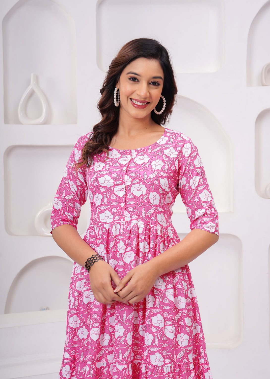 Make this summer even more memorable with the latest Pink Floral Printed Heavy Rayon Gown Dress from Nayu Fashions.